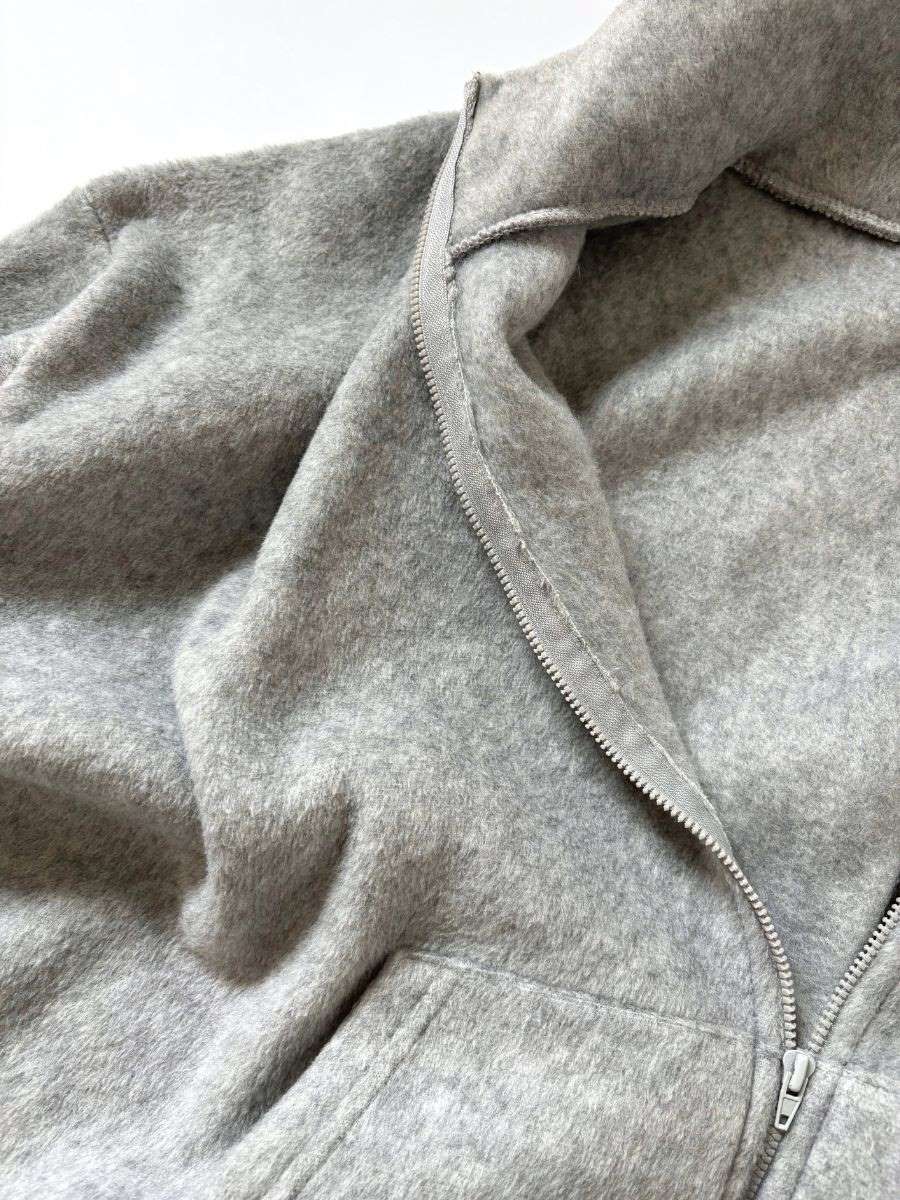 カーディガン感覚で気軽に羽織やすい、柔らかいフリース素材のジップアップ。