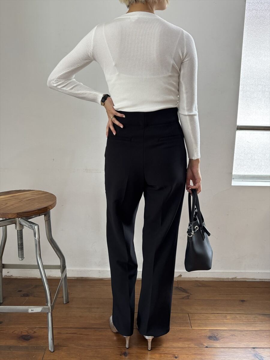 着丈が長めのスラックスパンツは、はきやすさが魅力。 シワになりにくい設計で、日常使いに最適です。カジュアルにもフォーマルにも合わせられるデザインで、さまざまなスタイルに対応します。美しいシルエットを保ちながら、リラックスした着心地を実現したおすすめの一着です。