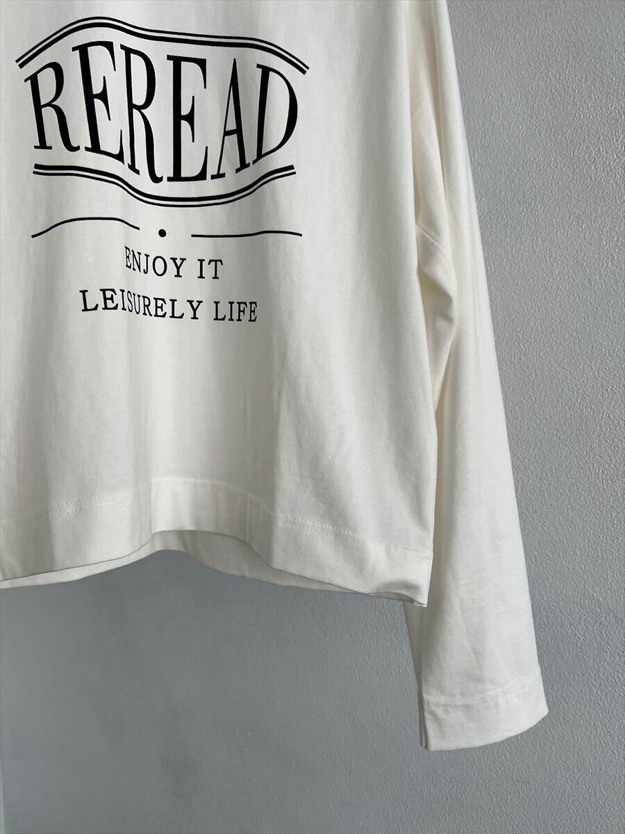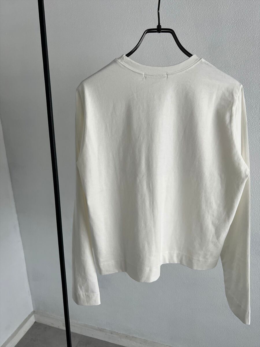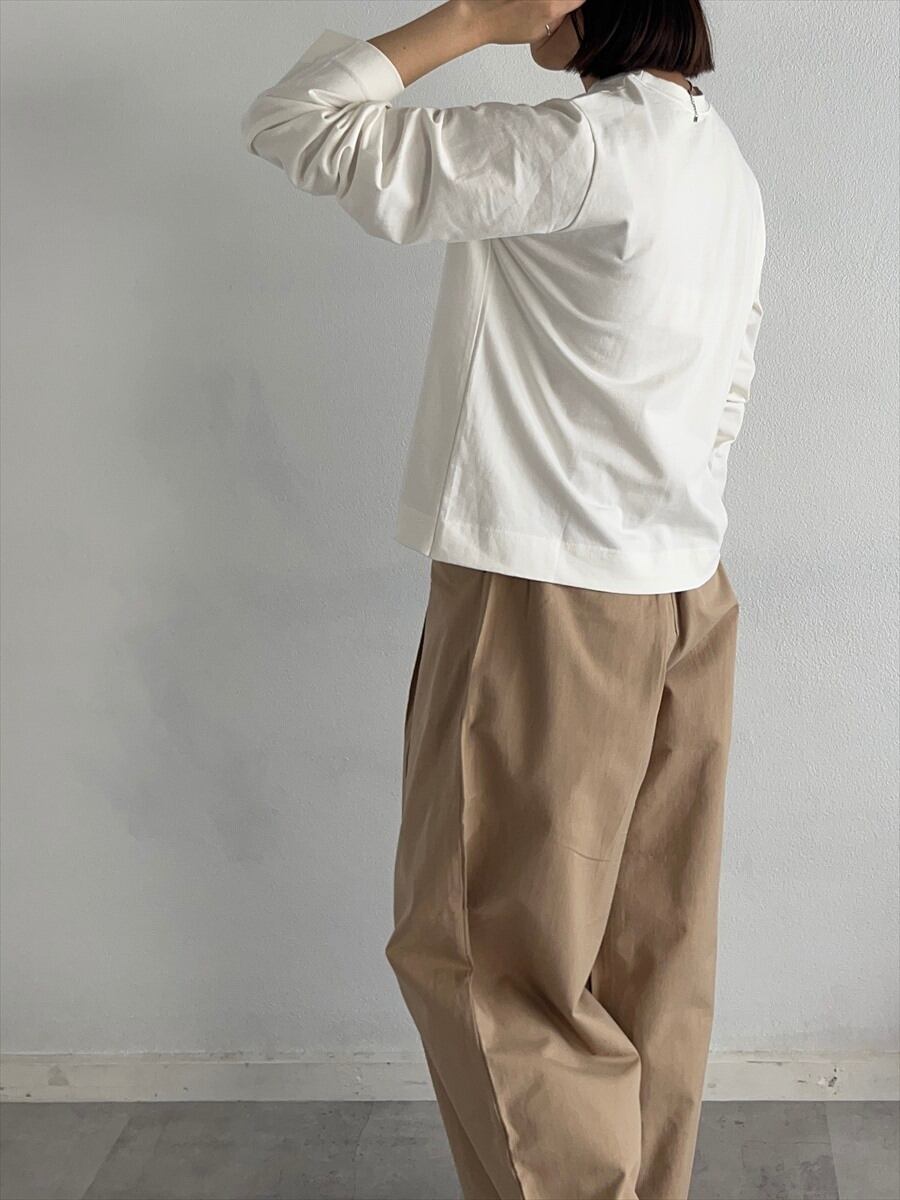 つるっとした綿素材のロンT。ホワイトでも透け感が出づらい生地の厚みです。