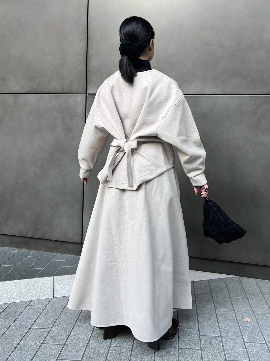 バックスタイルにリボンを結ぶことでメリハリあるスタイルに、オーバーサイズでストレスなく着られるのも嬉しいポイントです。